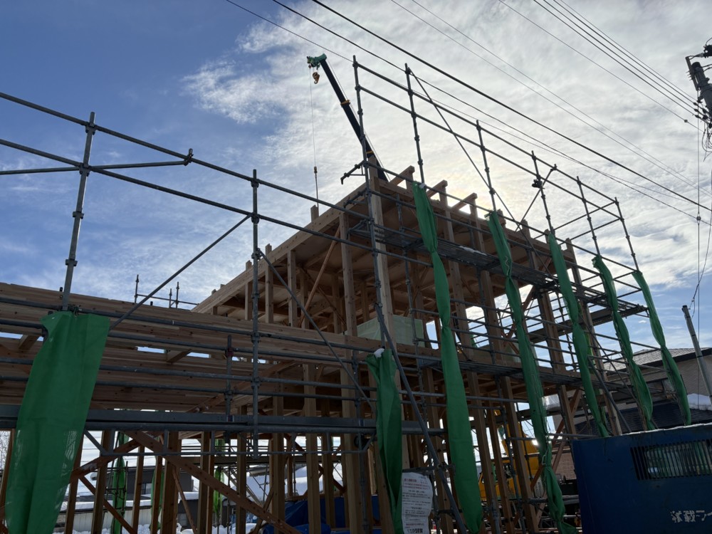 除排雪作業から数日後 建方が行われました